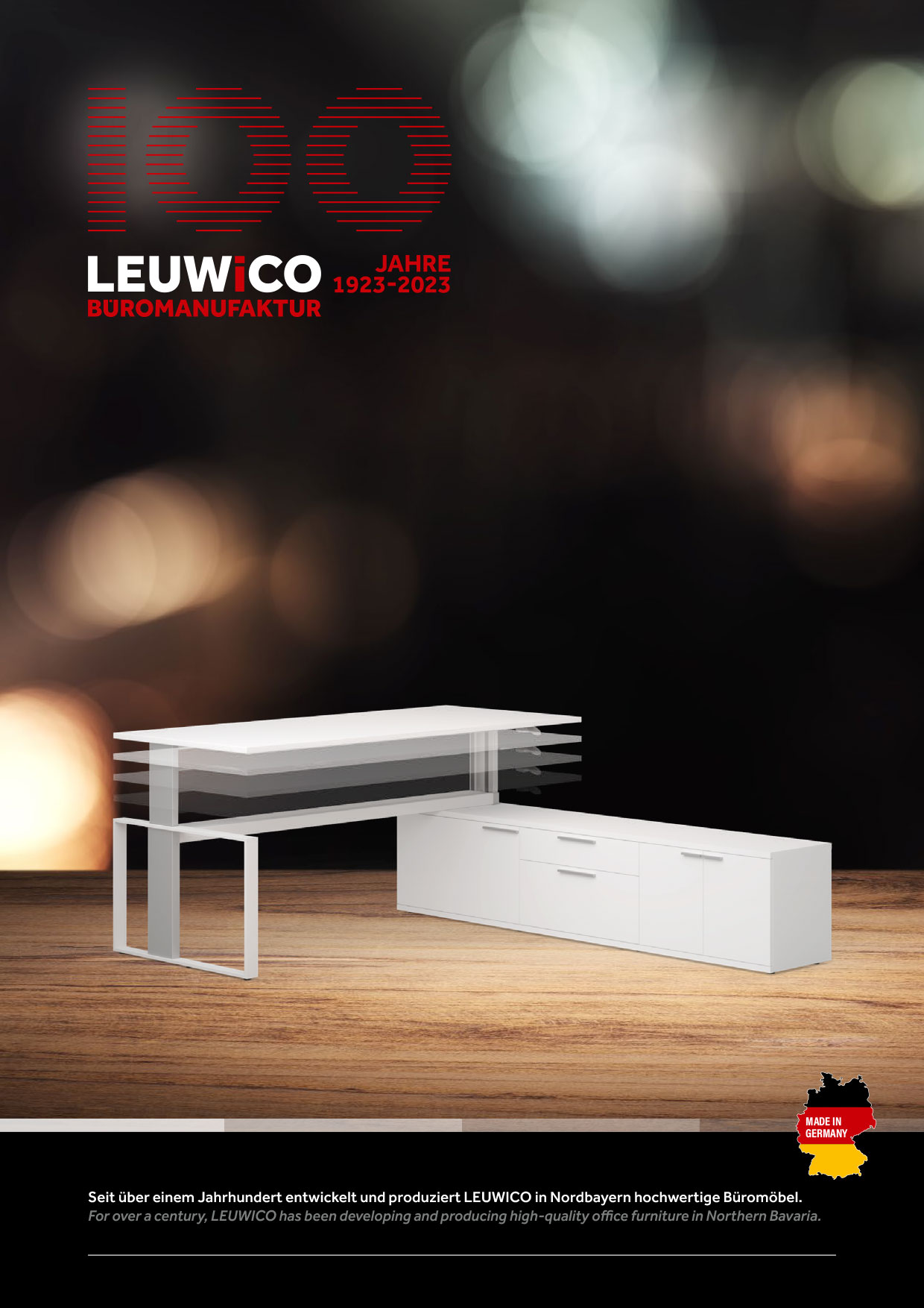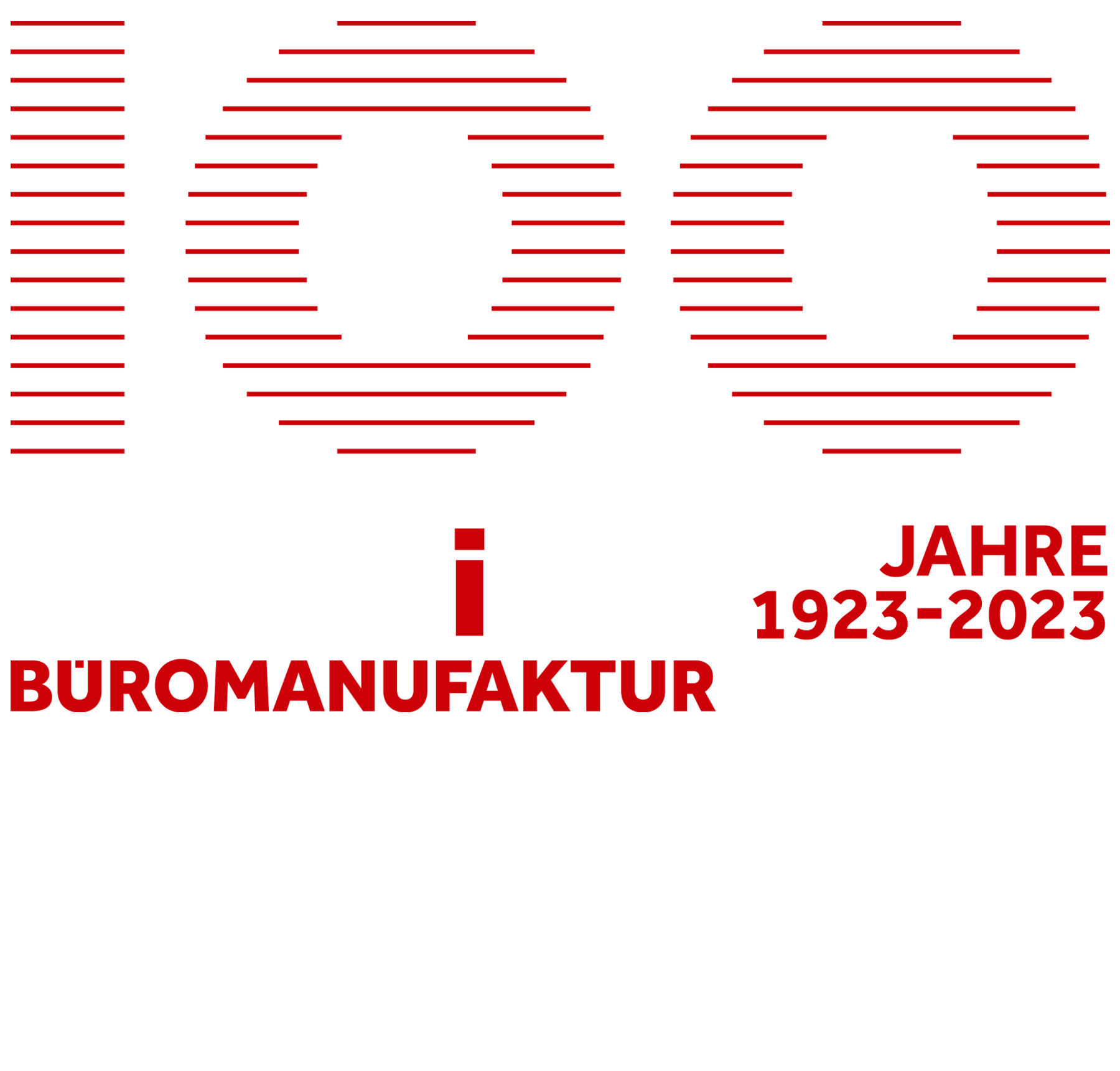 Das 100 Jahre Jubiläums-Logo stellt die Höhenverstellung der Produkte dar.